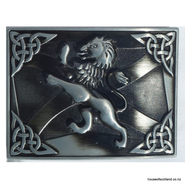 Stunning kilt belt buckle “lion rampant and saltire†in jet black enamel finish. Fits standard leather kilt belt.