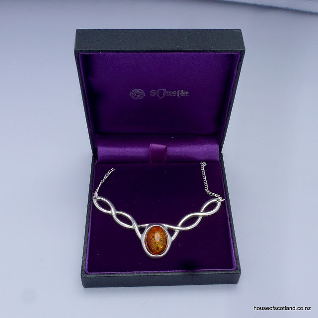 Gemstone knot pendant in pewter with 19†chain and choice of six stones – Amber, Lapis, Malachite, Amethyst, Rainbow moonstone, Turquoise.