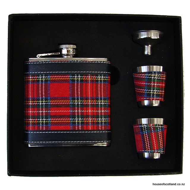 With Royal Stewart tartan, 6Oz flask with 2 shot glasses